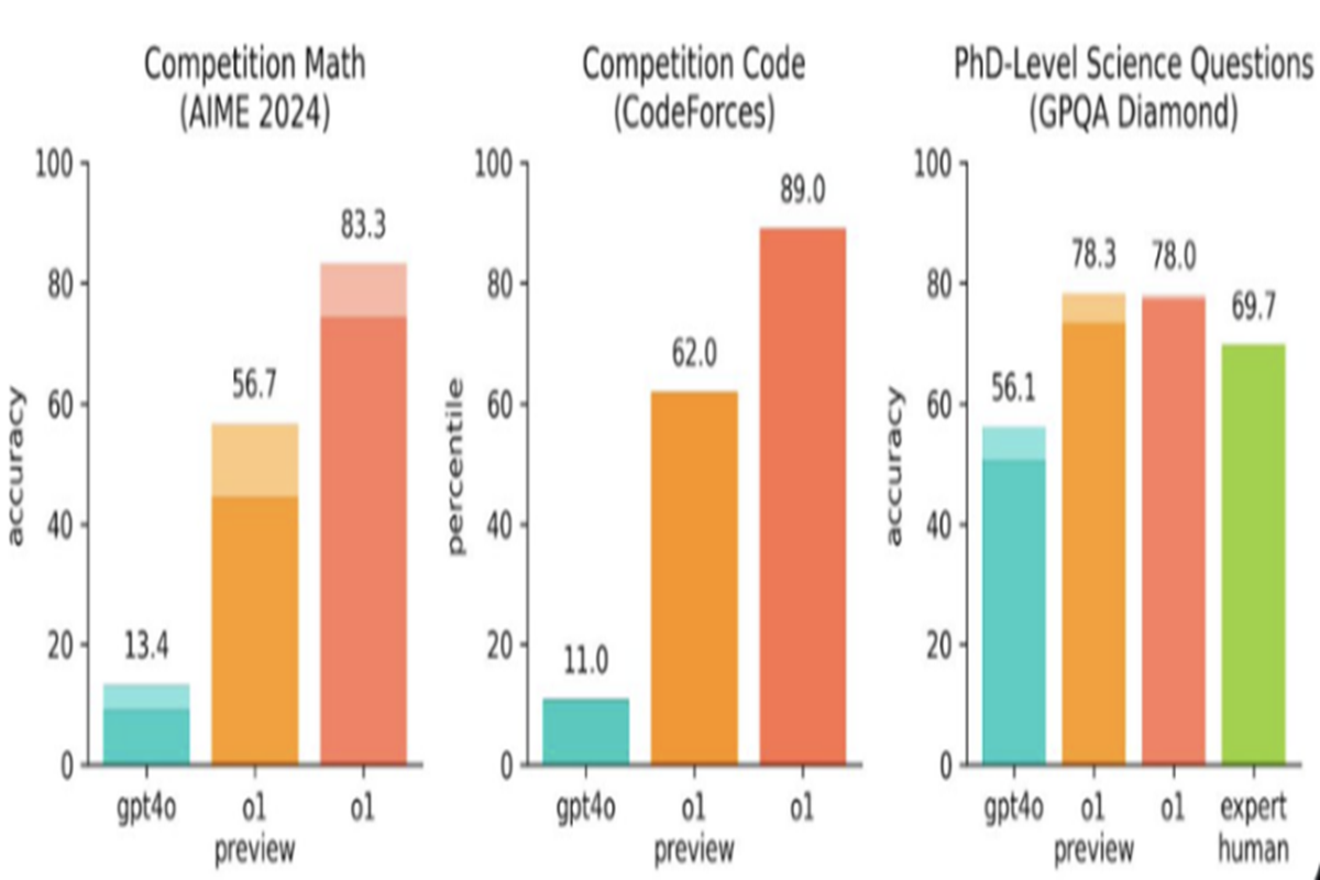 2024年9月,OpenAI公司发布了GPT-o1模型。o1模型被认为具备真正的通用推理能力,其在化学、物理和生物学等专业知识方面的准确率达到了78.3%。这表明LLM在特定领域已经能够超越人类专家,展现出强大的推理能力。